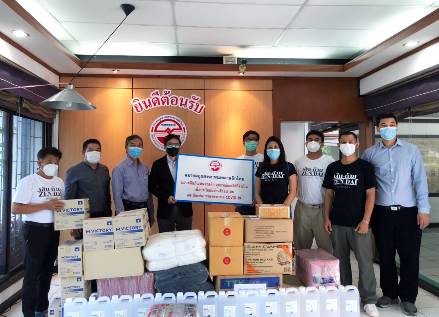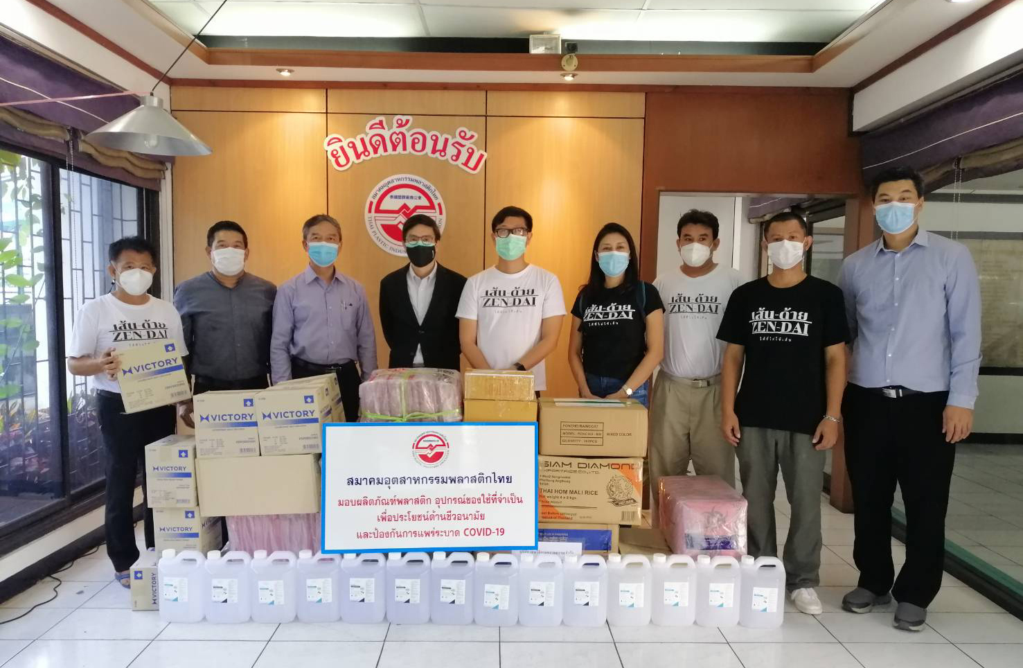 คุณถนัดกิจ เตชานุกูลชัย นายกสมาคมอุตสาหกรรมพลาสติกไทย พร้อมด้วย คุณชูเกียรติ ดุลยโกเมศ คุณเอก ณ ระนอง และคุณอานนท์ กาสาวพานิชย์ ผู้ช่วยรองนายกสมาคมอุตสาหกรรมพลาสติกไทย เป็นผู้แทนสมาชิกสมาคมอุตสาหกรรมพลาสติกไทย มอบผลิตภัณฑ์พลาสติก อุปกรณ์ของใช้ที่จำเป็น เพื่อประโยชน์ด้านชีวอนามัยและป้องกันการแพร่ระบาด COVID-19 สำหรับช่วยเหลือสนับสนุนเจ้าหน้าที่ทางการแพทย์ ผู้ป่วยติดเชื้อและผู้ที่ได้รับผลกระทบจากสถานการณ์การแพร่ระบาด COVID-19 ให้กับกลุ่มอาสาช่วย COVID-19 'กลุ่มเส้นด้าย' โดยมี คุณคริส โปตระนันทน์ ผู้ร่วมก่อตั้งกลุ่มเส้นด้าย เป็นผู้แทนรับมอบ