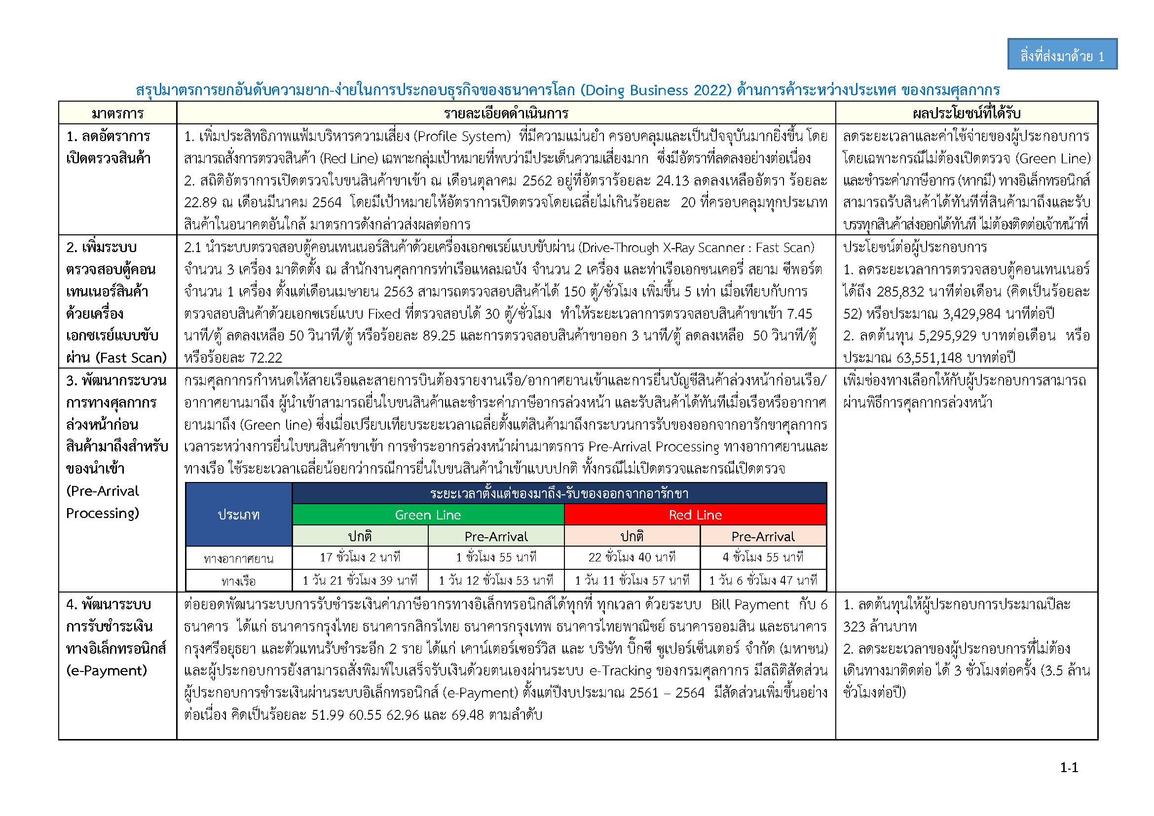 1. สรุปมาตรการยกอันดับความยาก-ง่ายในการประกอบธุรกิจของธนาคารโลก (Doing Business 2022) ด้านการค้าระหว่างประเทศ ของกรมศุลกากร
