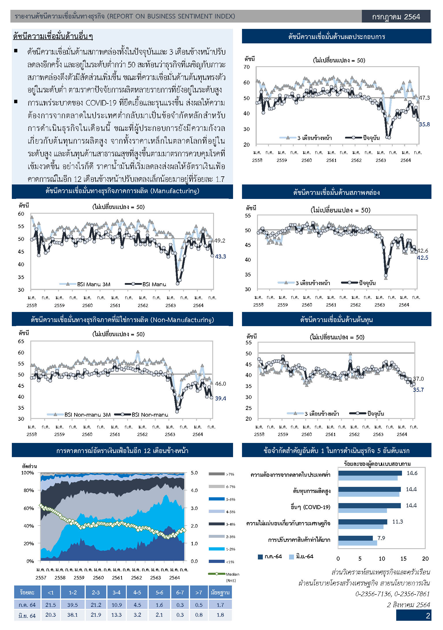 ดัชนีความเชื่อมั่นทางธุรกิจ ประจำเดือนกรกฎาคม 2564 ขอขอบคุณข้อมูลจาก : ธนาคารแห่งประเทศไทย ข่าวสารวงการพลาสติก ฮิต: 1026