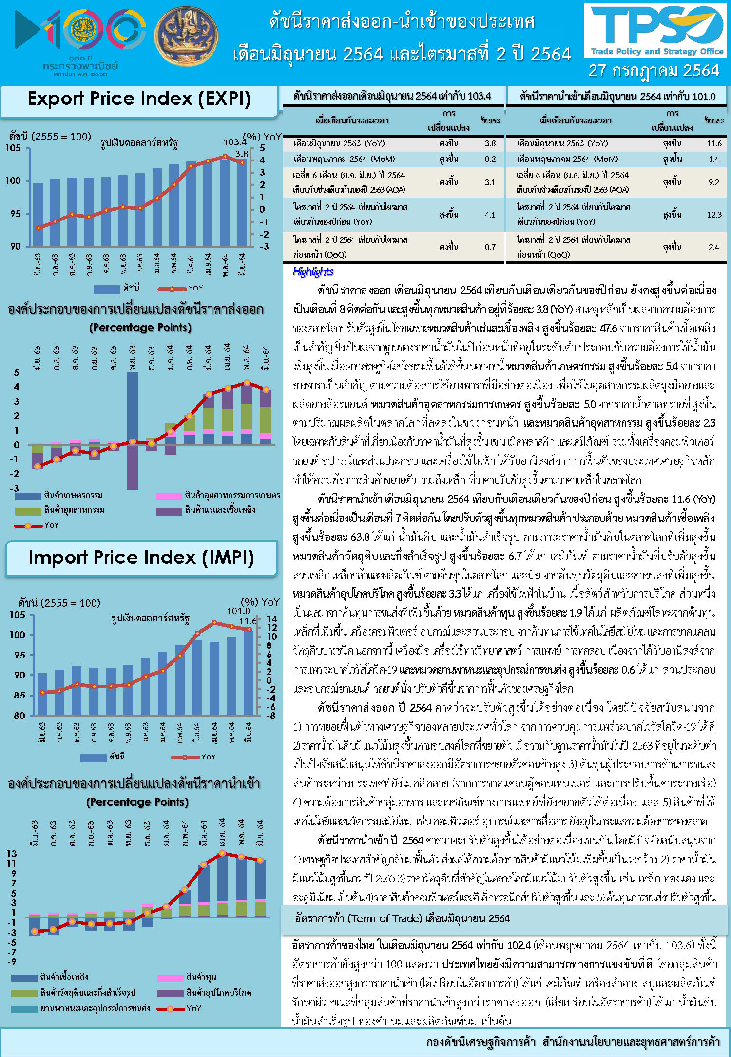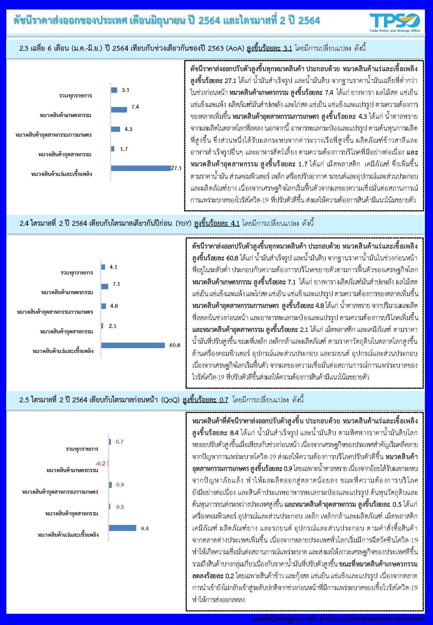 ขอขอบคุณข้อมูลจาก : กองดัชนีเศรษฐกิจการค้า สำนักงานนโยบายและยุทธศาสตร์การค้า กระทรวงพาณิชย์