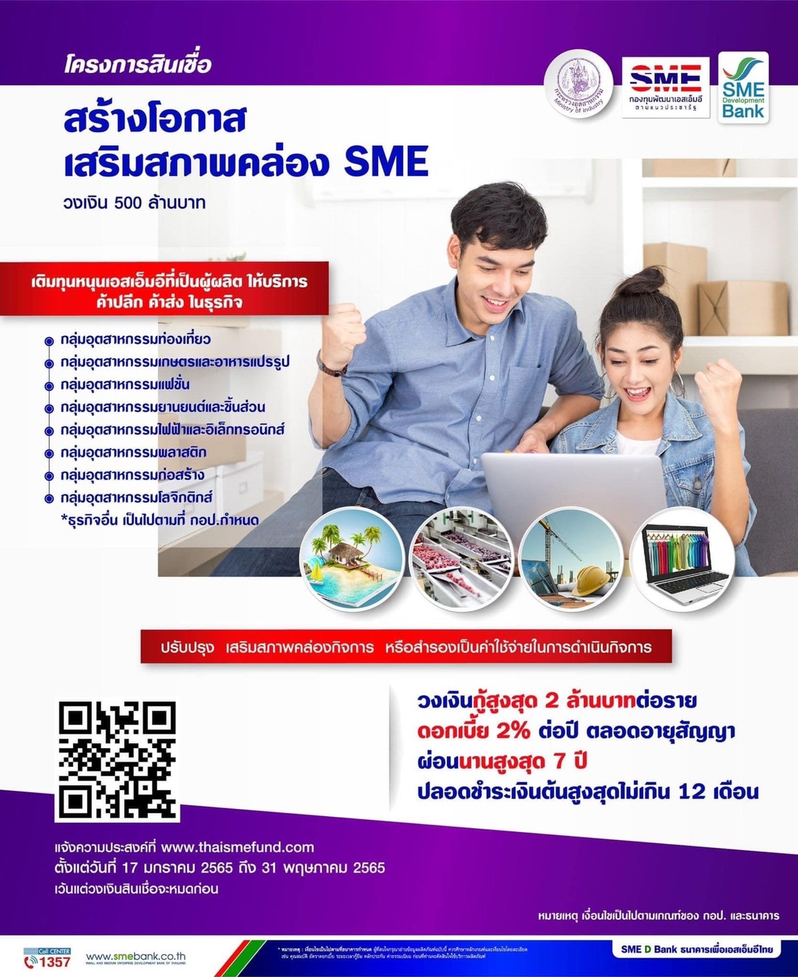 2) โครงการสินเชื่อ สร้างโอกาสเสริมสภาพคล่อง SME พ.ศ. 2565 (วงเงิน 500 ล้านบาท)