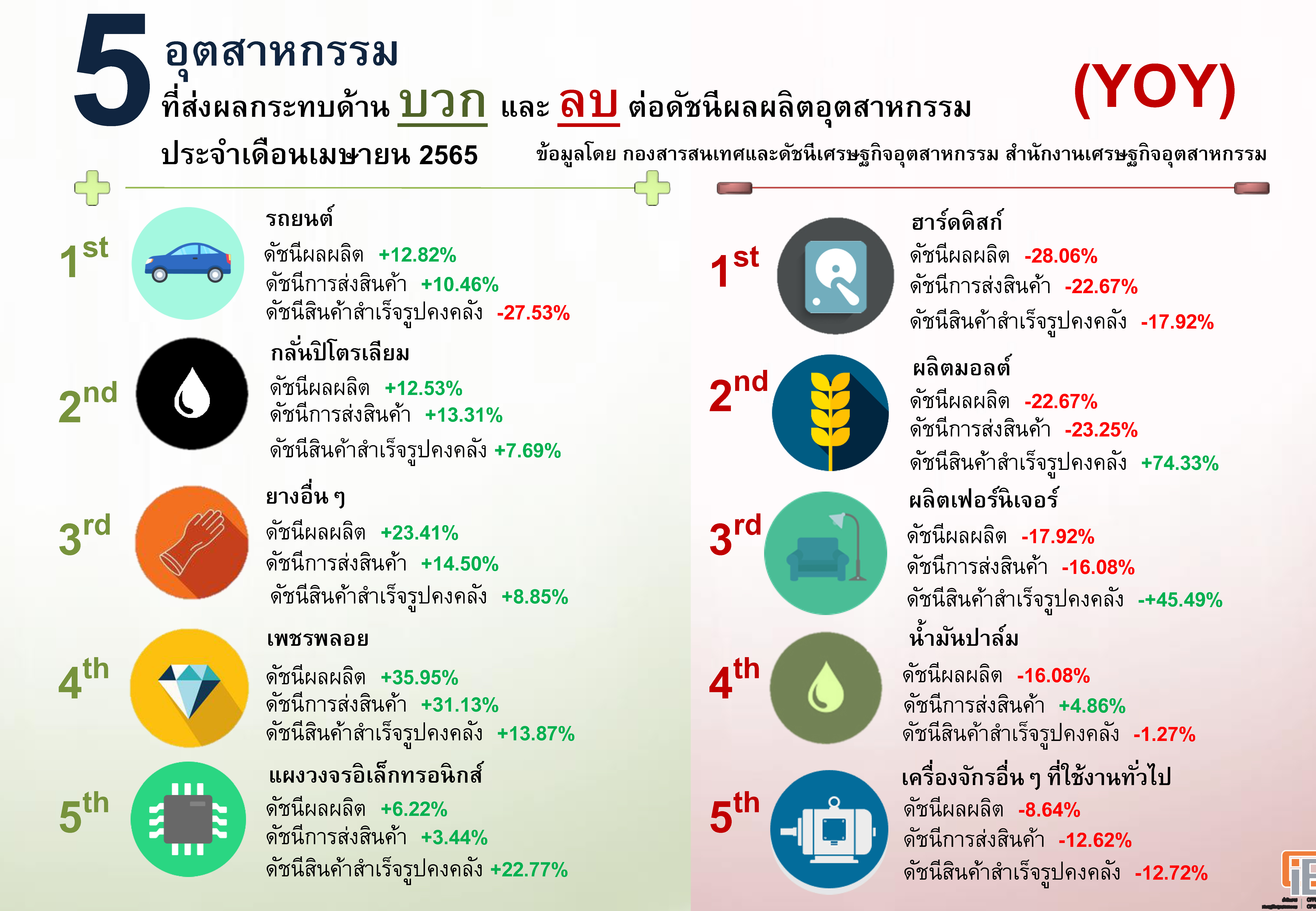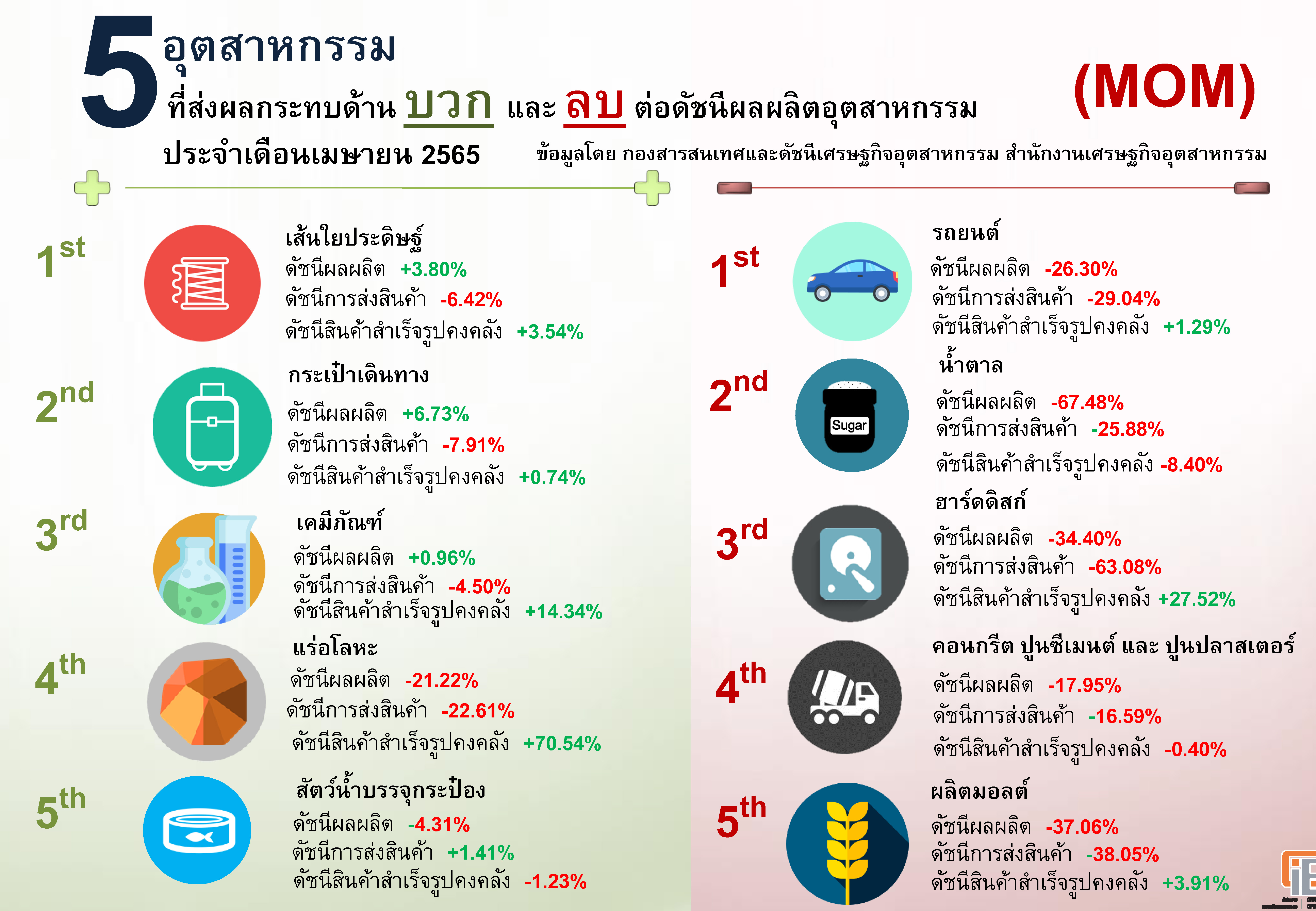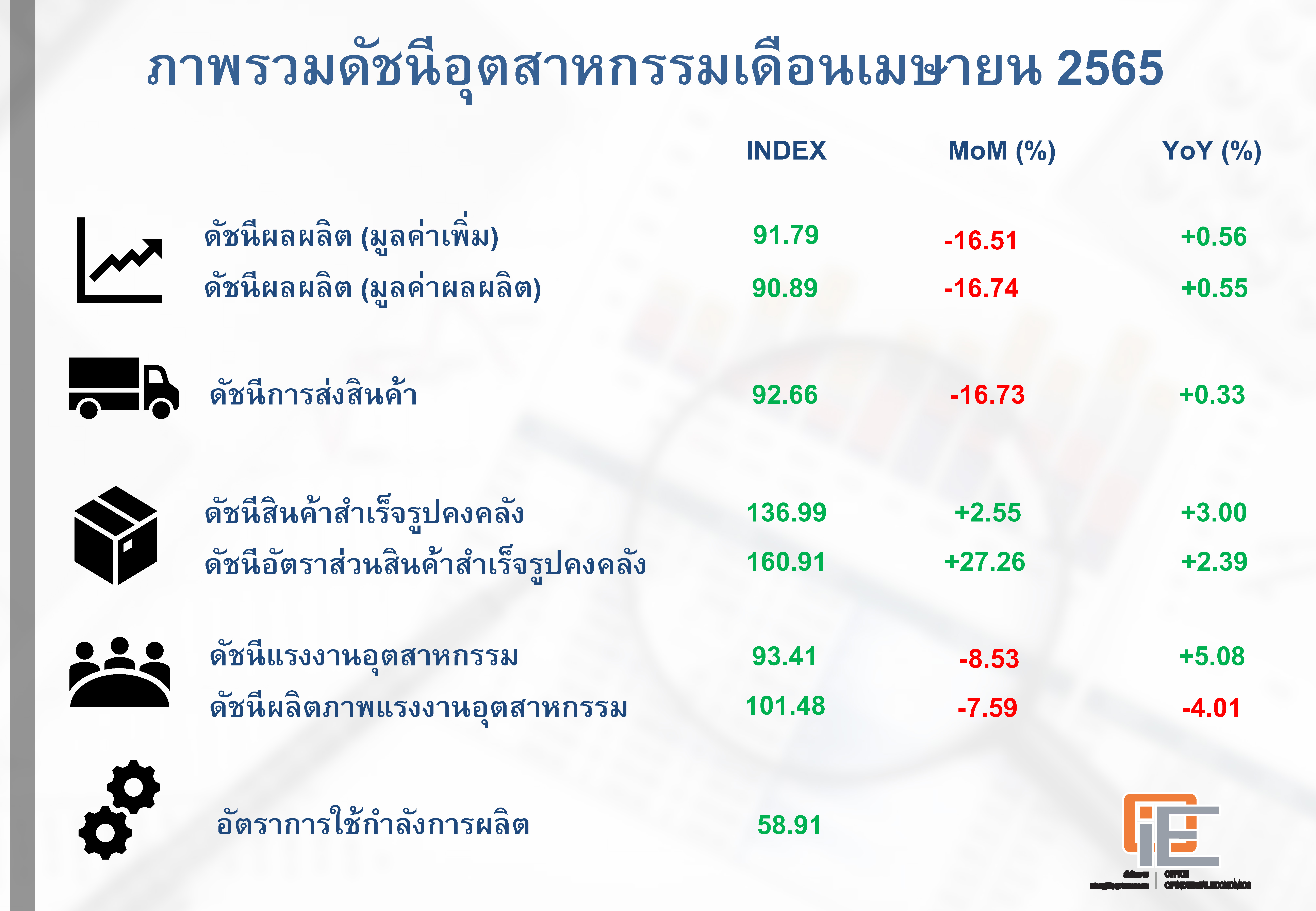 ภาพรวมดัชนีอุตสาหกรรมไทยประจำเดือนเมษายน 2565