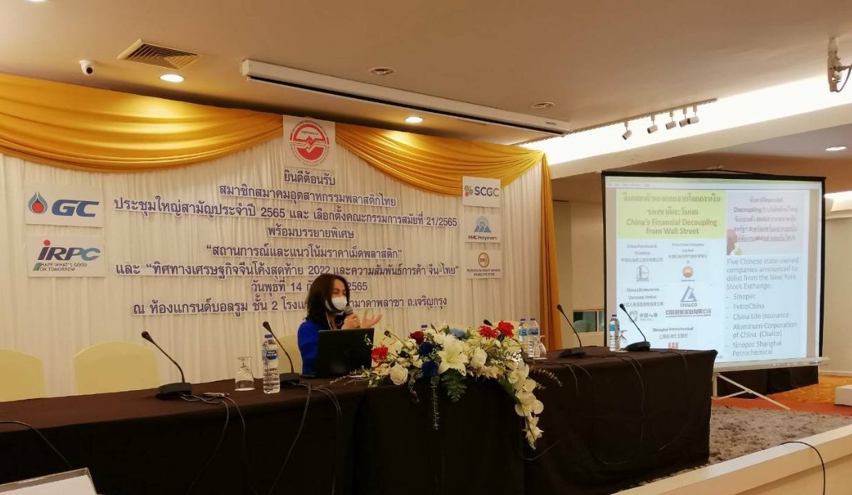 โดย : คุณสิริรัชต์ หวานแฉล้ม นักวิเคราะห์การตลาดธุรกิจปิโตรเคมี บริษัท ไออาร์พีซี จำกัด (มหาชน) และ “ทิศทางเศรษฐกิจจีน โค้งสุดท้าย 2022 และความสัมพันธ์การค้า จีน-ไทย” โดย : รองศาสตราจารย์ ดร.อักษรศรี พานิชสาส์น ผู้เชี่ยวชาญด้านเศรษฐกิจจีน จากคณะเศรษฐศาสตร์มหาวิทยาลัยธรรมศาสตร์