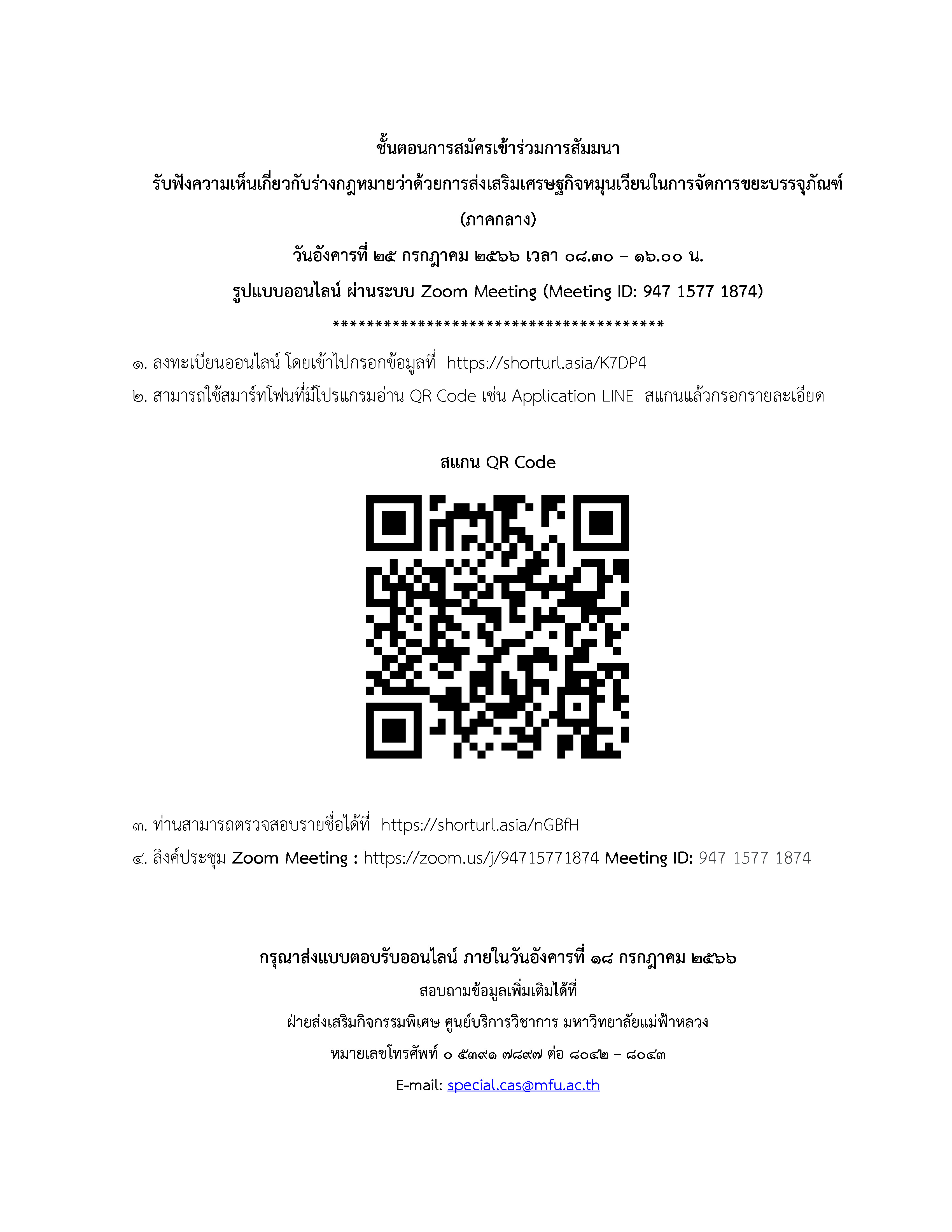 วันอังคารที่ 25 กรกฎาคม 2566 เวลา 08.30 - 16.00 น. ณ ห้อง Grand Ballroom 1 โรงแรมรามาการ์เด้นส์ กรุงเทฯ หรือลงทะเบียนเข้าร่วมสัมมนา Online ผ่านระบบ Zoom Meeting ตามลิงค์ด้านล่างนี้ https://shorturl.asia/K7DP4