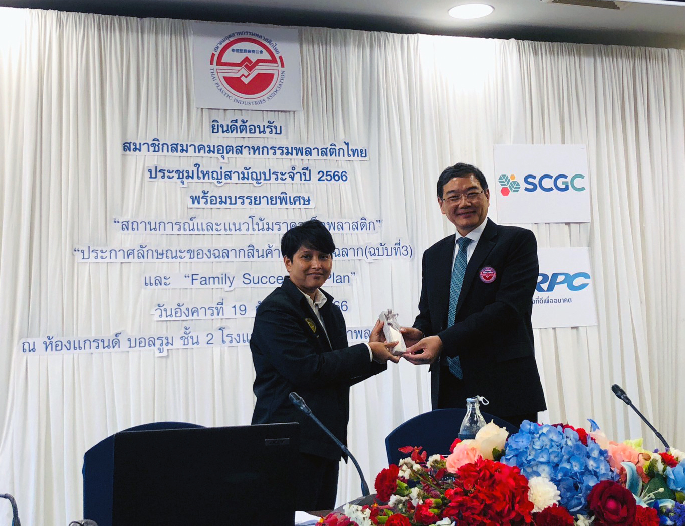คุณวิเชียร เล็กวิจิตรธาดา นายกสมาคมอุตสาหกรรมพลาสติกไทย และประธานการประชุมใหญ่สามัญประจำปี 2566 กล่าวต้อนรับสมาชิกสมาคมฯ ที่มาเข้าร่วมประชุมพร้อมทั้งกล่าวเปิดการประชุมใหญ่อย่างเป็นทางการ