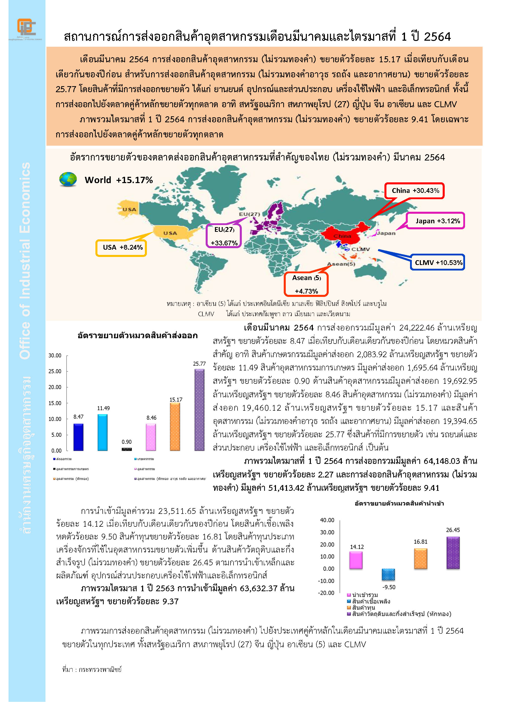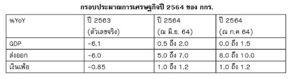 นายผยง ศรีวณิช ประธานสมาคมธนาคารไทย ในฐานะประธานคณะกรรมการร่วมภาคเอกชน3 สถาบัน ( กกร.) แถลงผลการประชุมกกร.ประจำเดือนกรกฎาคม 2564 ว่า ที่ประชุม กกร.มีมติปรับลดประมาณการเศรษฐกิจไทยปี 2564 เหลือขยายตัวได้ในกรอบ 0.0- 1.5% จากเดิมที่เดือนมิถุนายน ประมาณการขยายตัวในกรอบ 0.5-2.0 % เนื่องจากการระบาดของโควิด-19 ระลอกใหม่รุนแรงและยาวนานขึ้นกว่าที่ประเมินไว้ก่อนหน้า โดยเฉพาะสายพันธุ์เดลต้า ทำให้ต้องใช้มาตรการที่เข้มงวดในการควบคุมการระบาด ส่งผลกระทบโดยตรงต่อการดำเนินธุรกิจ การจ้างงานและรายได้แรงงาน ในพื้นที่ควบคุม นอกจากนี้ มาตรการจำกัดการเดินทางและข้อจำกัดในการกักตัว คาดว่ายังส่งผลกระทบต่อการท่องเที่ยวในประเทศตลอดช่วงไตรมาสที่สาม และอาจจะกระทบแผนการเปิดประเทศได้ แต่ทั้งนี้ก็ขึ้นอยู่กับความรุนแรงของโควิด-19 และมาตรการเพิ่มเติมของรัฐ