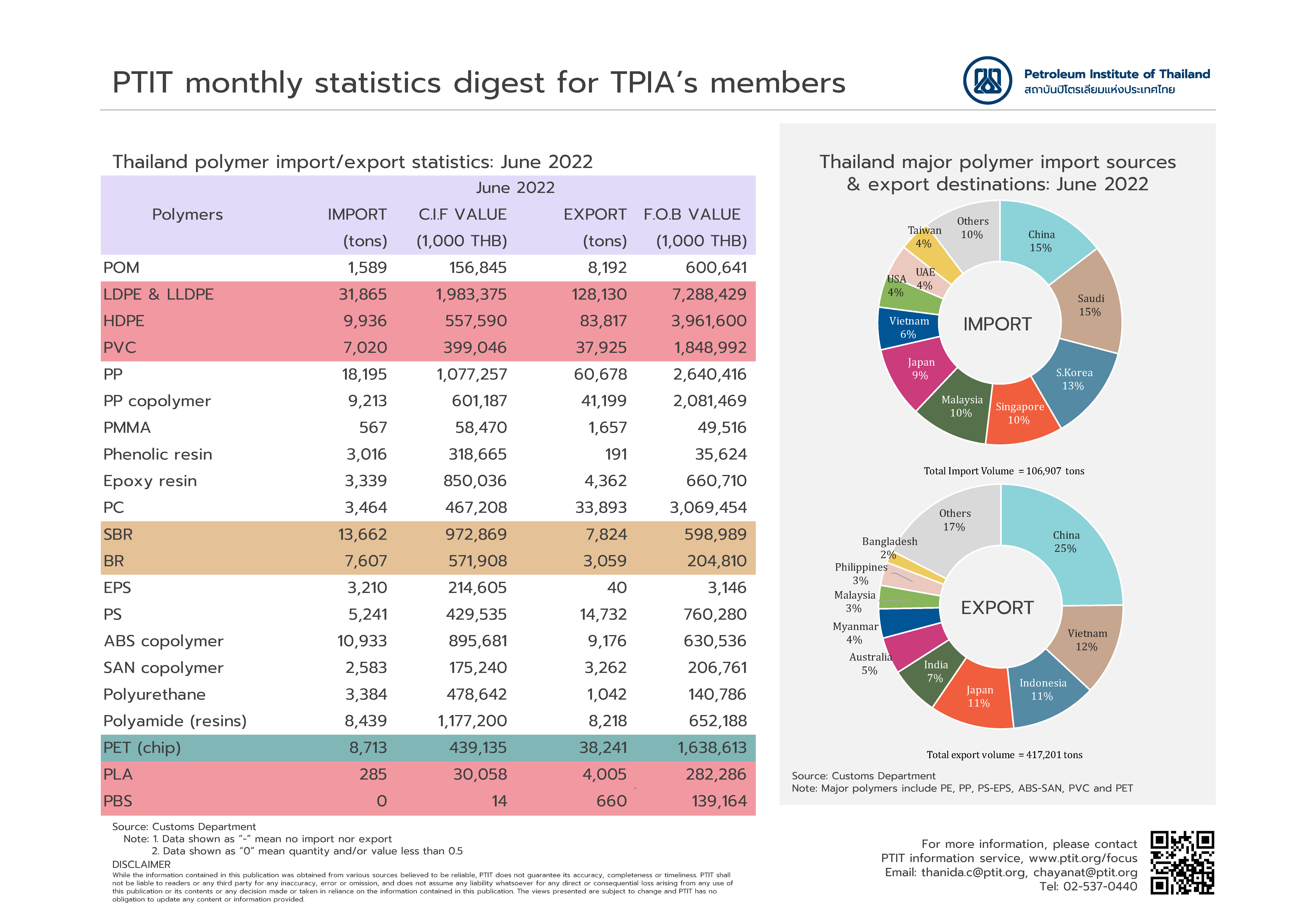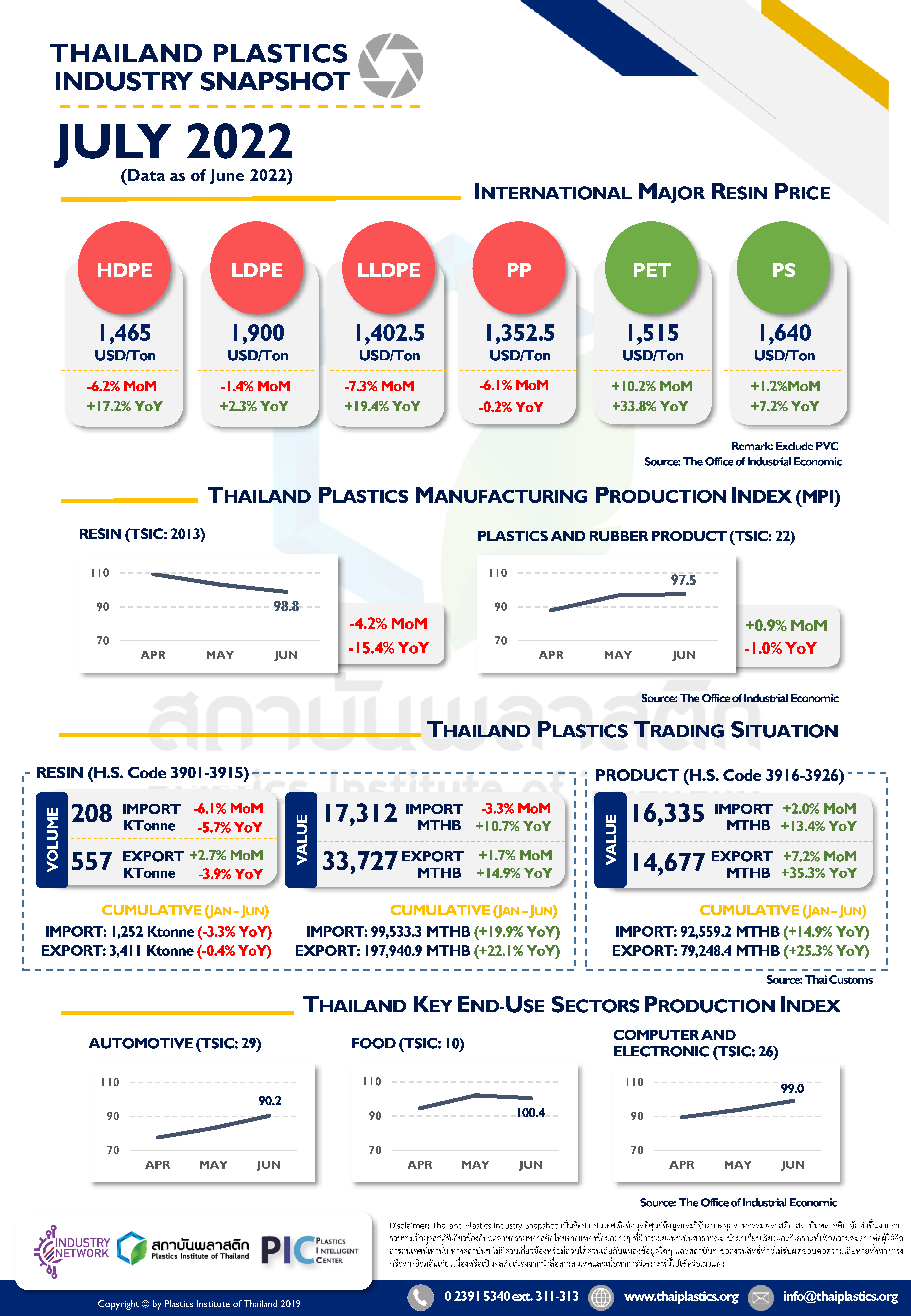 ข้อมูลการนำเข้า-ส่งออกปิโตรเคมี ประจำเดือนมิถุนายน 2565 ข่าวสารวงการพลาสติก ฮิต: 829 อ่านเพิ่มเติม...